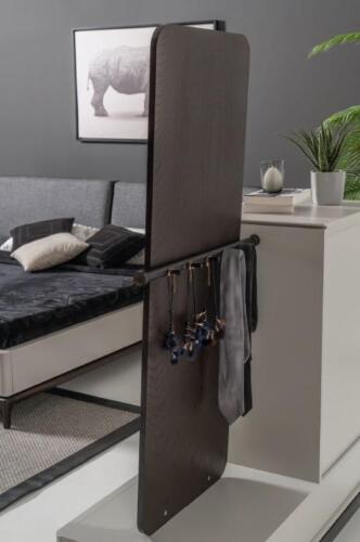 De moderne zwart-wit slaapkamer set is een stijlvolle en eigentijdse toevoeging aan elke slaapkamer. Het set bestaat uit een ruim tweepersoonsbed met de afmetingen 193 x 230 x 173 cm, inclusief een comfortabel ligoppervlak van 180 x 200 cm. Daarnaast bevat de set twee bijpassende nachtkastjes en een ladekast met een grote spiegel, allemaal gemaakt van hoogwaardig hout, textiel en glas. Het strakke zwart-witte design zorgt voor een minimalistische uitstraling en past perfect in een modern interieur. Dankzij de solide constructie en duurzame materialen is deze slaapkamer set niet alleen esthetisch aantrekkelijk, maar ook functioneel en praktisch in gebruik.