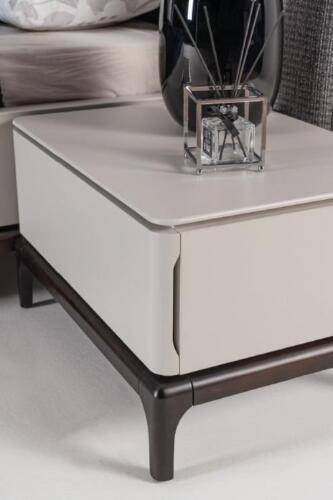 Modern zwart-wit slaapkamer set (bed, twee nachtkastjes, ladekast met spiegel)