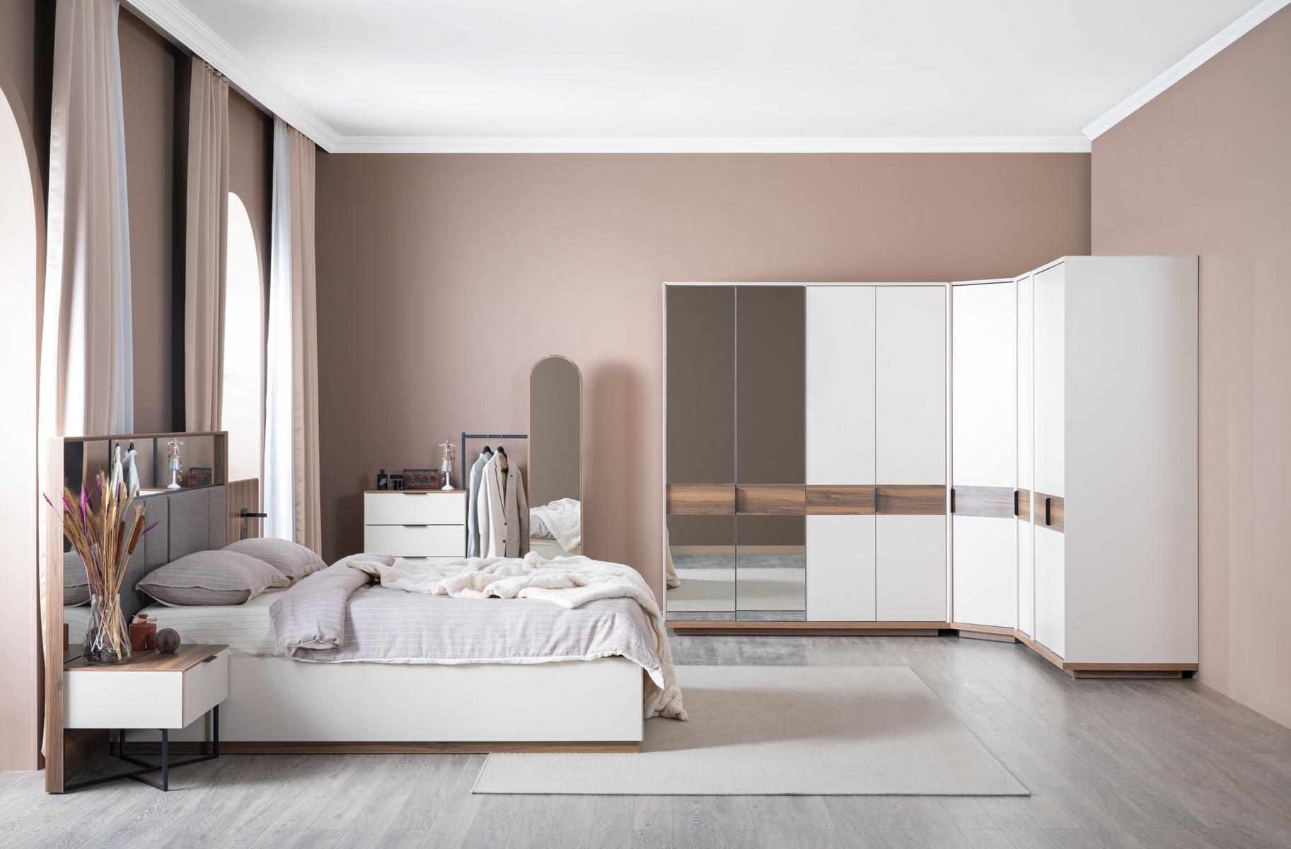 Slaapkamer dressoir met spiegelset hout Modern Wit Meubilair