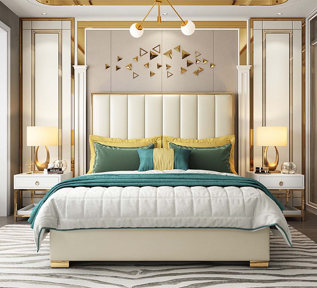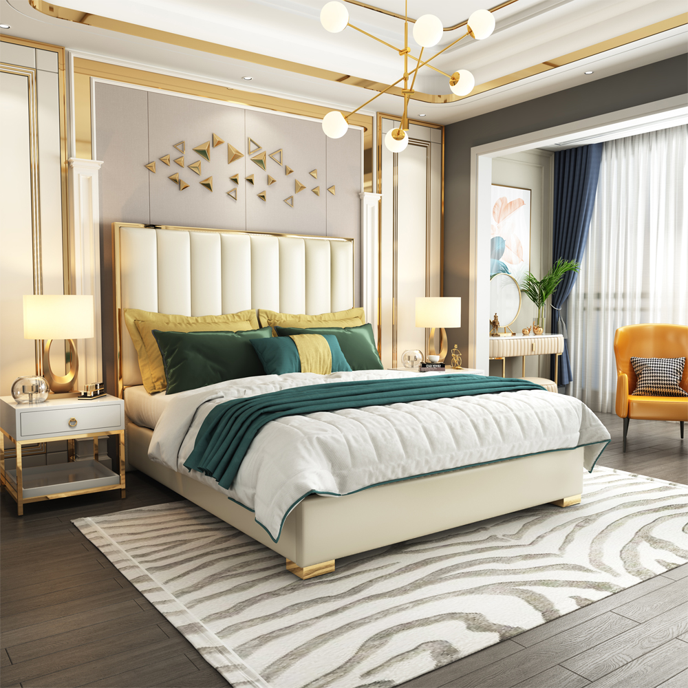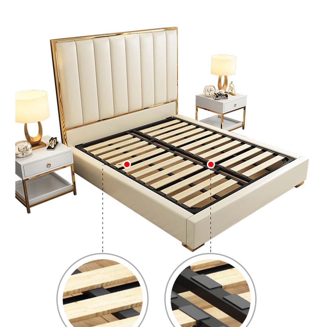 Klassieke slaapkamerbed Wit Textiel Bedden Lederen bekleding Tweepersoons