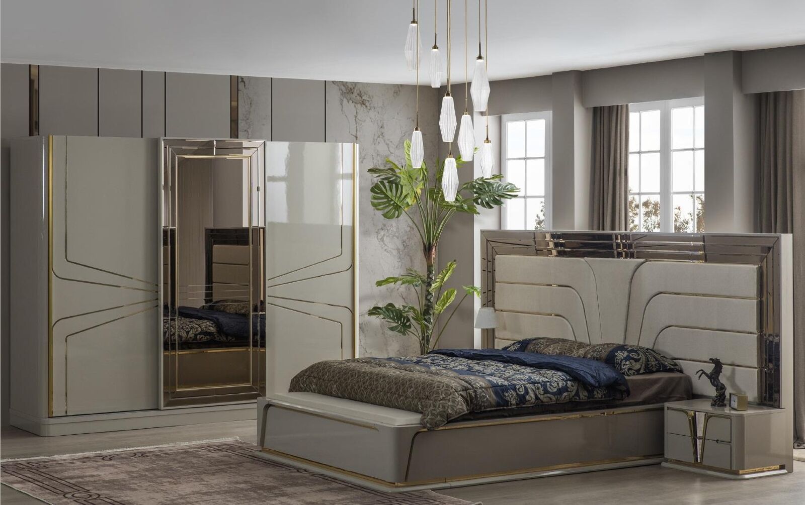 Luxe kledingkast houten kast kast slaapkamer kasten beige