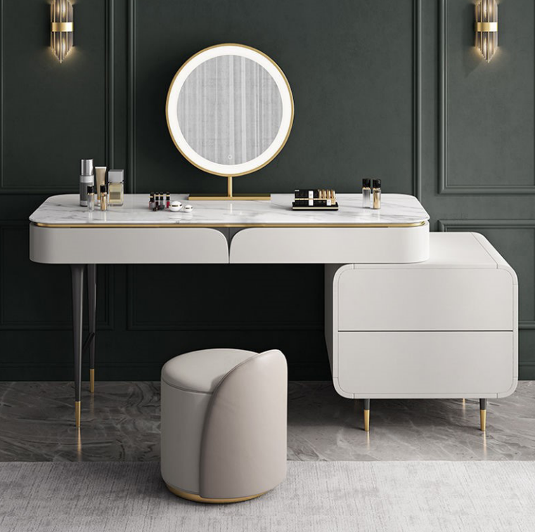 Ontdek de veelzijdigheid van de Tafel console spiegel kaptafel: De kaptafel kan dienen als een handige plek om uw make-up en sieraden op te bergen, terwijl de spiegel ervoor zorgt dat u zich altijd perfect kunt opmaken. De afmetingen van ongeveer 120 x 45 x 75 cm bieden extra ruimte en comfort. Verkrijgbaar in de afgebeelde kleur en gemaakt van hoogwaardig edelstaal en steen, is deze kaptafel niet alleen een functioneel meubelstuk, maar ook een echte eyecatcher in uw slaapkamer.