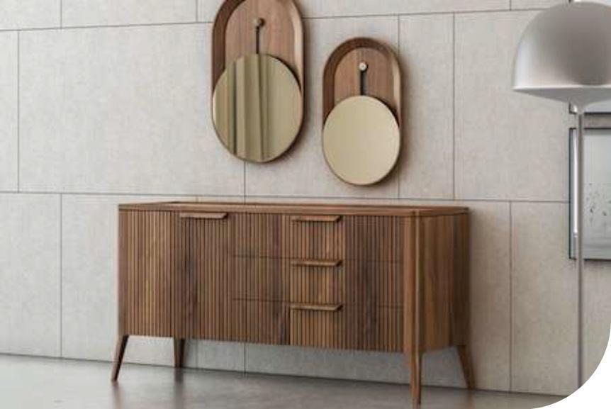 Walnoot Natuur, Toros, Zwarte Marmer, Ladenkast, Luxe Woonkamermeubelen, Exclusief Ontwerp