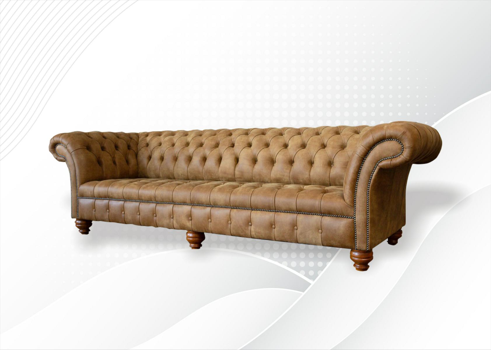 Met de Chesterfield 4-zits Lichtbruin Modern Design Bank Leer Bankstel voeg je een vleugje elegantie en comfort toe aan je woonruimte. Dit moderne bankstel is ontworpen met oog voor detail en vakmanschap. De lichtbruine lederen bekleding geeft de bank een luxe uitstraling, terwijl het binnenframe van echt hout zorgt voor duurzaamheid en stabiliteit. Met een ruime zitruimte van ca. 265 x 98 cm biedt deze bank voldoende plaats voor gezellige avonden met vrienden en familie. De zachte zitkussens en een comfortabele zithoogte van ca. 42 cm zorgen voor een ontspannen zitervaring.