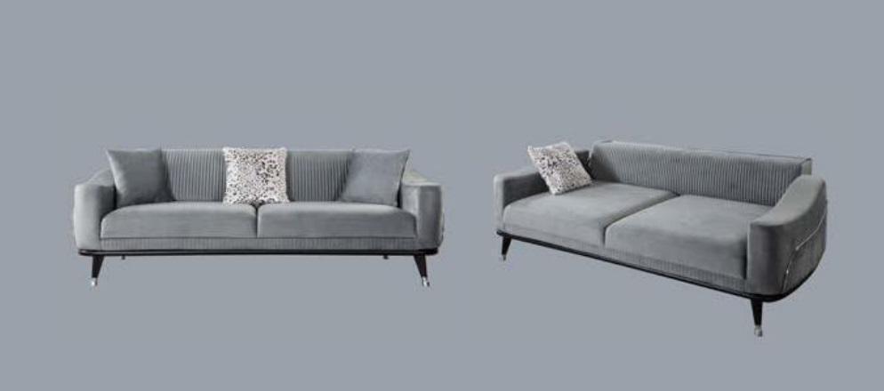 Grijze design bank sofa fluweel driezitter luxe banken meubels banken stof textiel