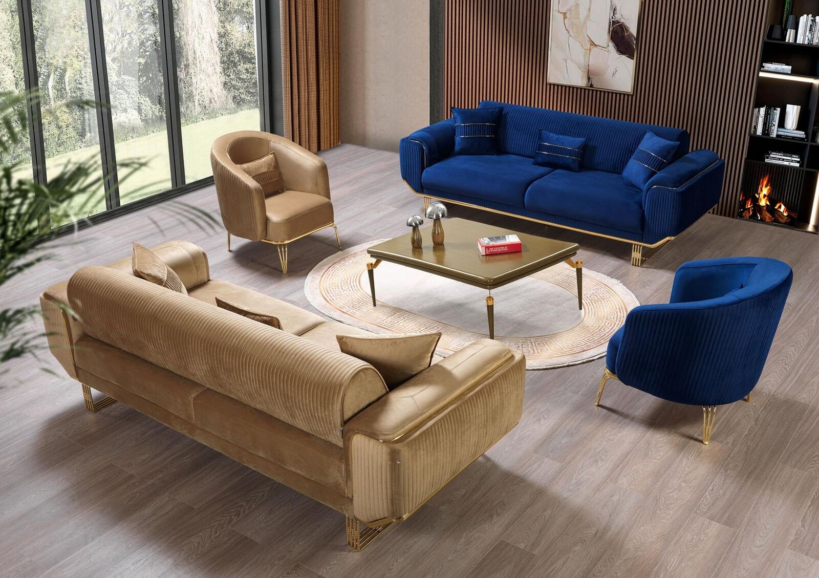 Luxe 3-zits bank woonkamer blauw banken ontwerp modern meubilair