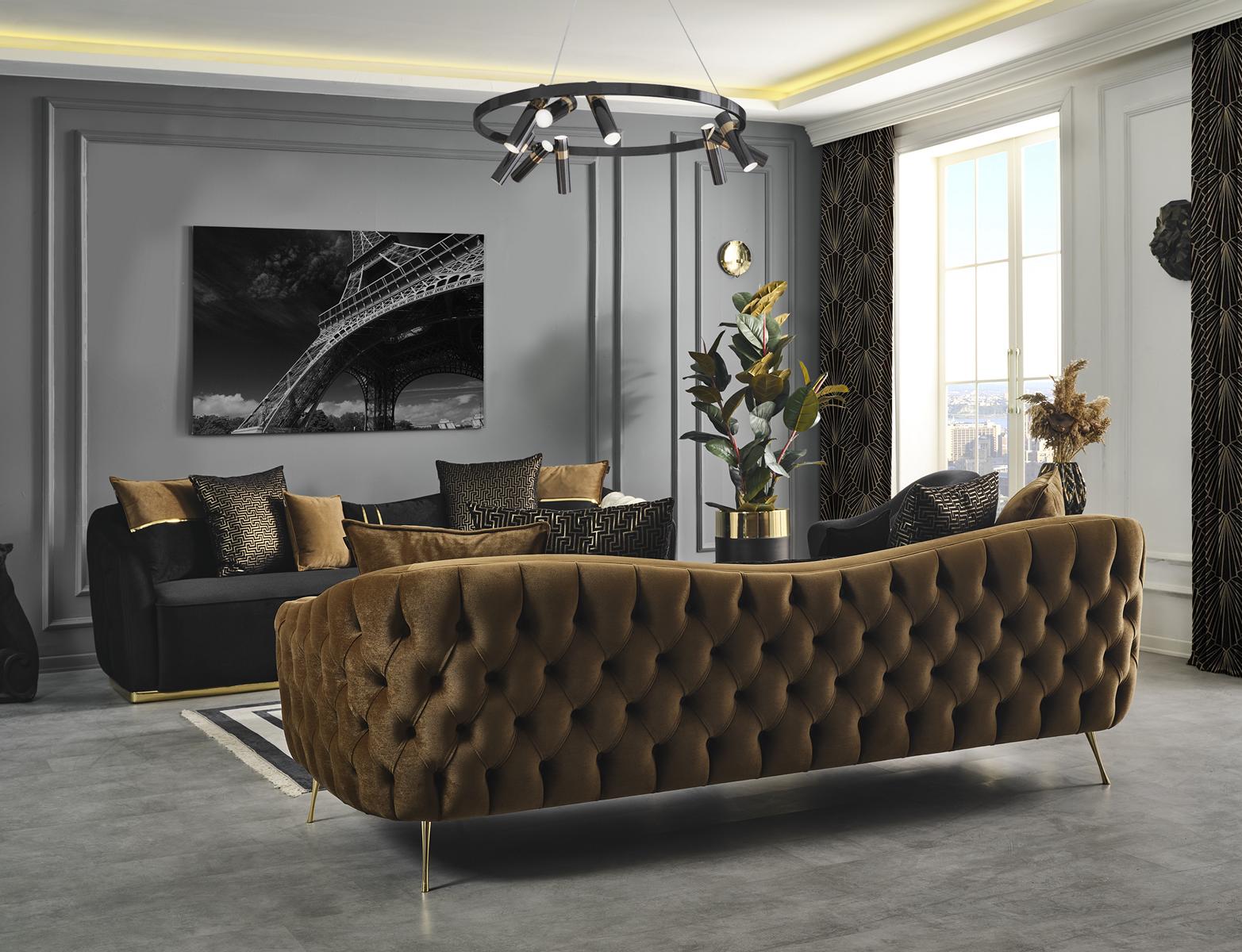 Bankstel 3-zits bruin textiel woonkamer designbank moderne nieuwe luxe