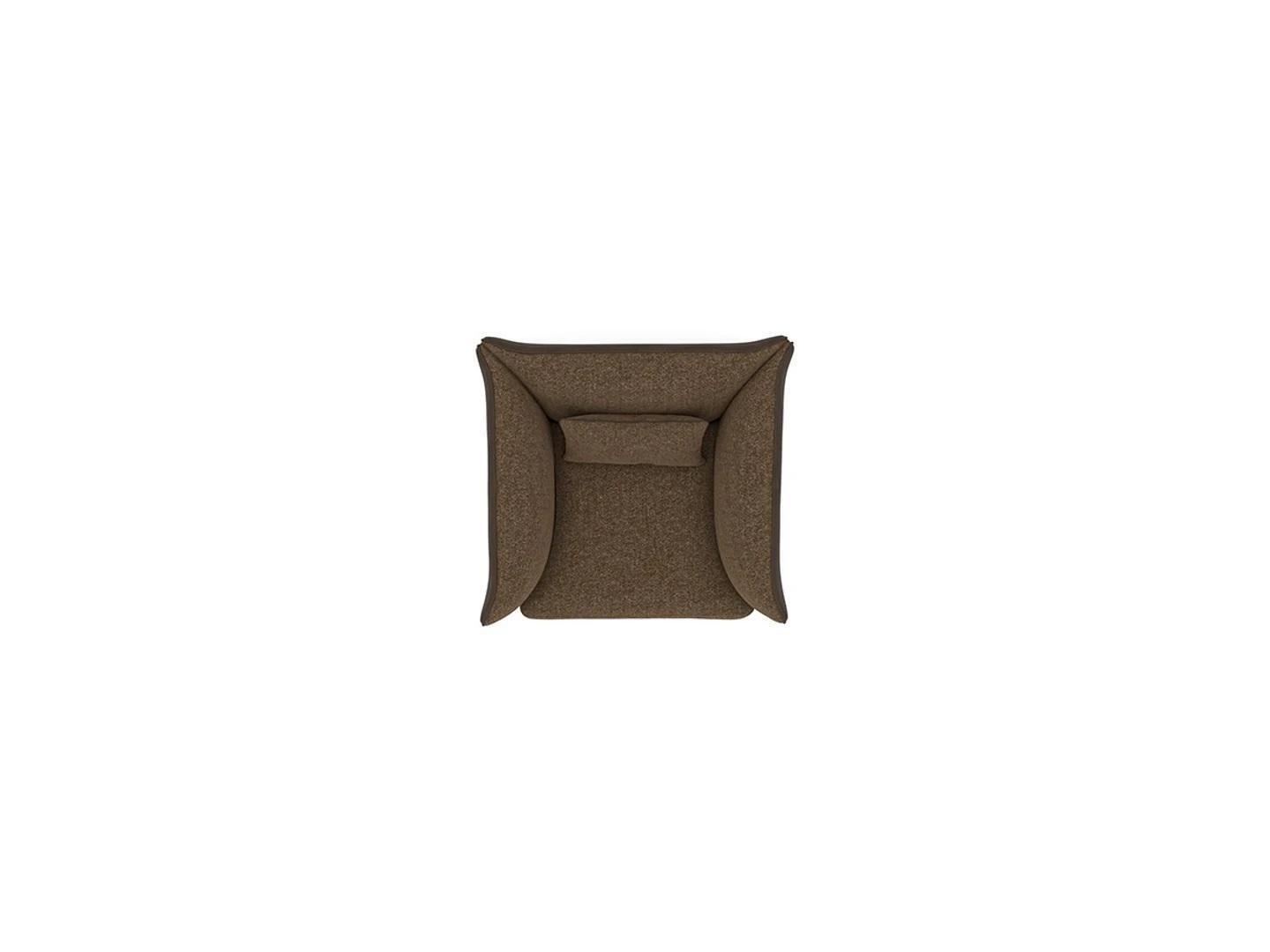 Bruine fauteuil woonkamer inrichting luxe textiel gestoffeerd meubilair modern design.