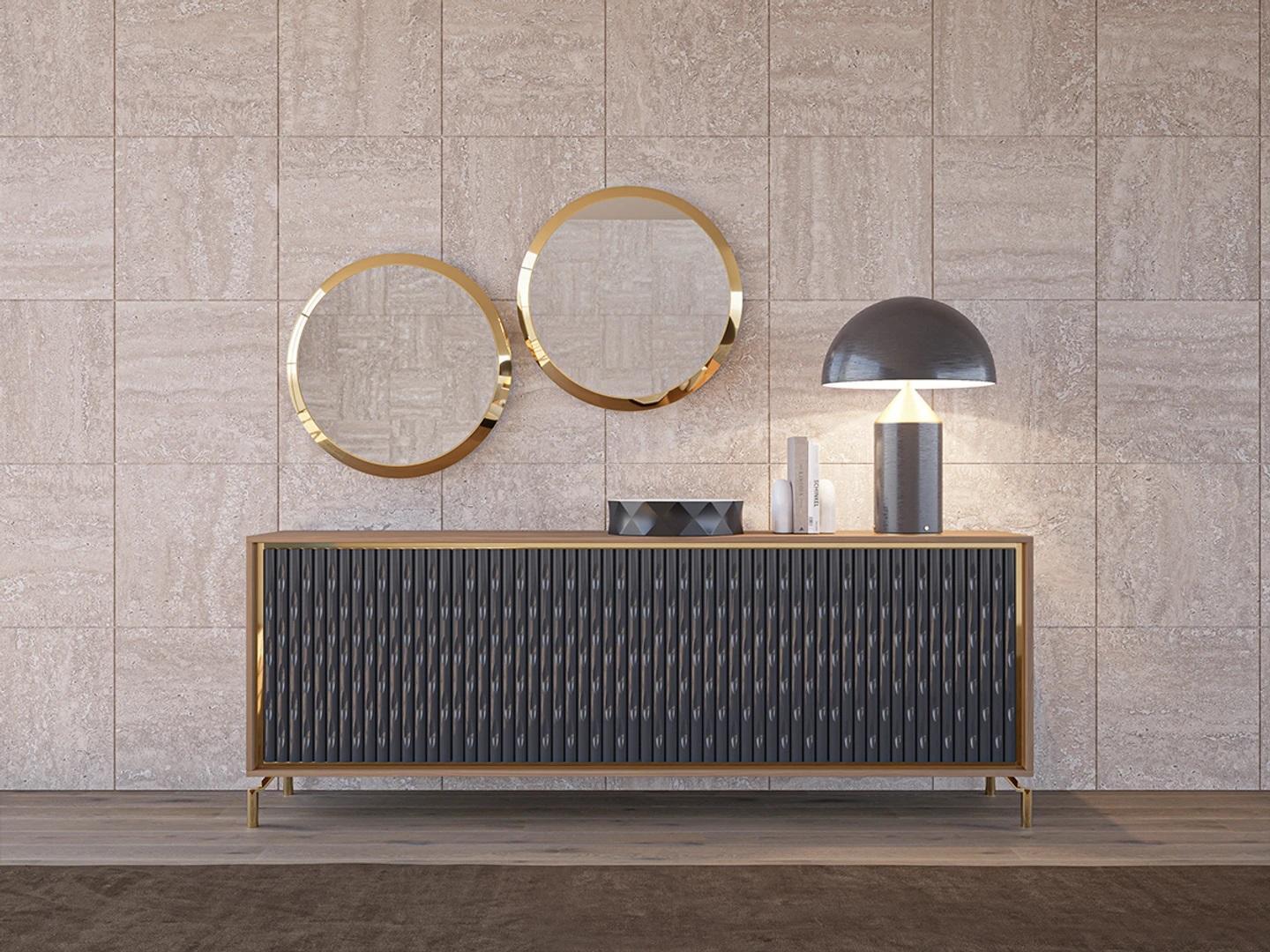 Het dressoir met 2 spiegels is ideaal voor het opbergen van servies, tafelkleden en andere eetkamerbenodigdheden. De afmetingen en het ontwerp maken het een veelzijdig meubelstuk dat zowel functioneel als esthetisch aantrekkelijk is. De luxueuze uitstraling past perfect bij een moderne inrichting en voegt een vleugje klasse toe aan elke eetkamer. Of het nu gaat om het serveren van maaltijden aan gasten of gewoon om dagelijks gebruik, dit dressoir en de bijbehorende spiegels zullen een onmisbaar element worden in jouw woning.