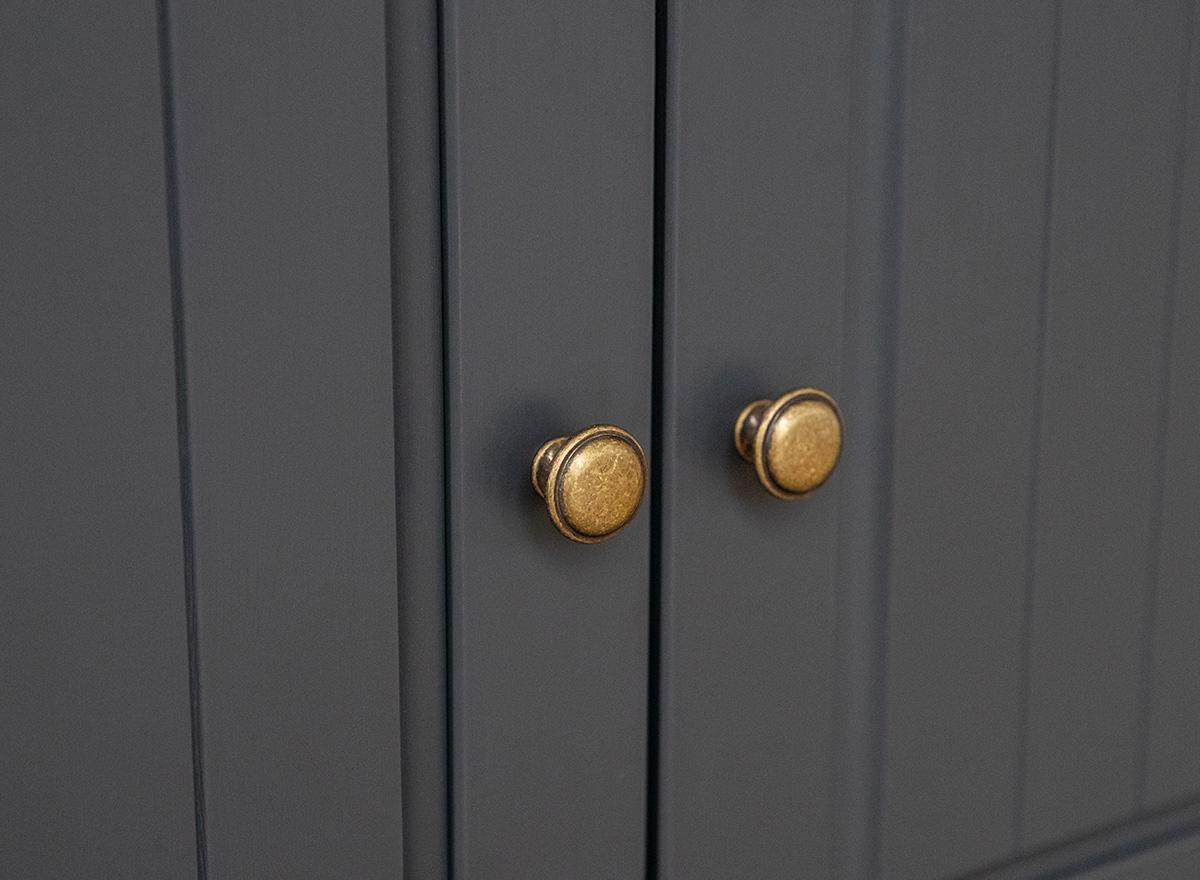 Woonkamerkast van luxe modern zwart XXL houten planken, lage commode zijbord kast