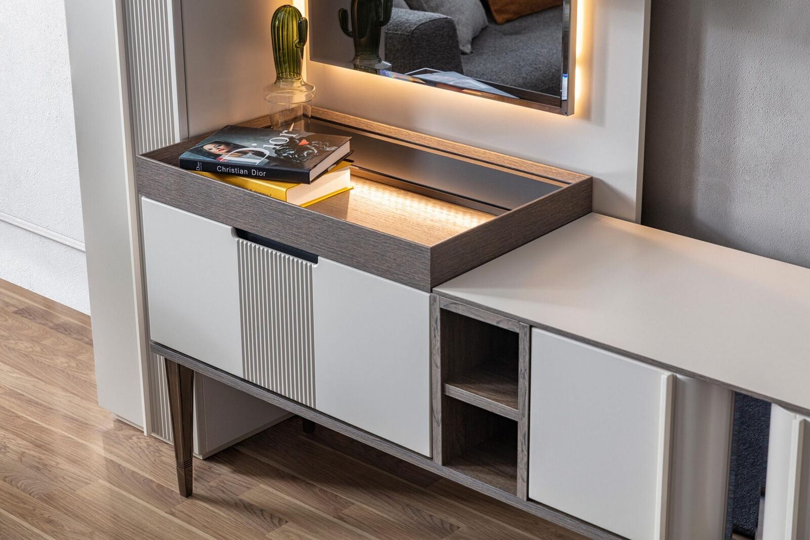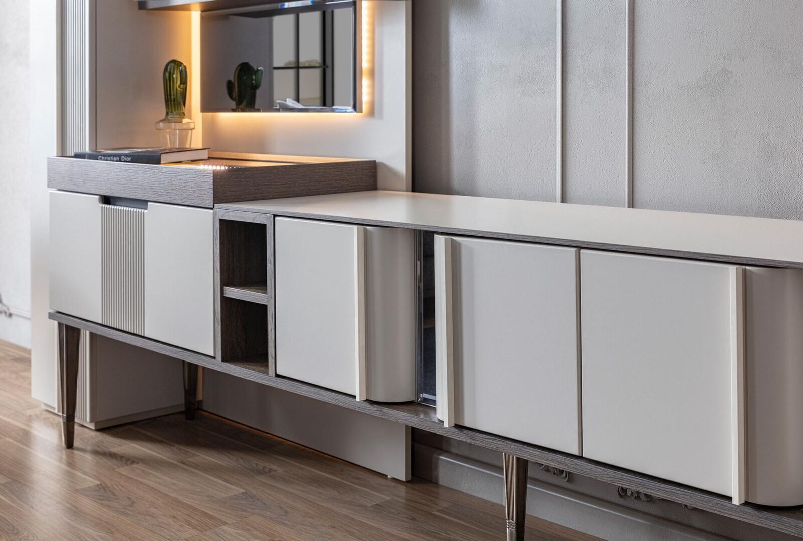 Exclusieve woonkamerwand Witte kleur Designmeubelen voor woonkamer LED-verlichting
