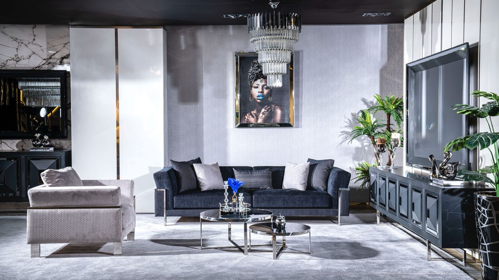 Sofa set 3+3+1 dressoir spiegel salontafel zitbank set design