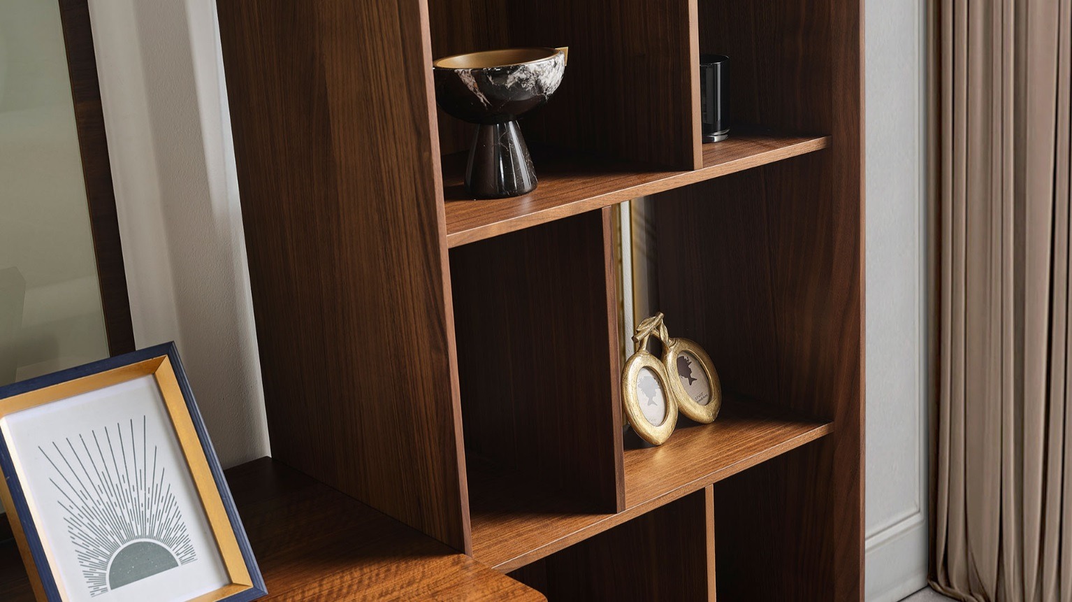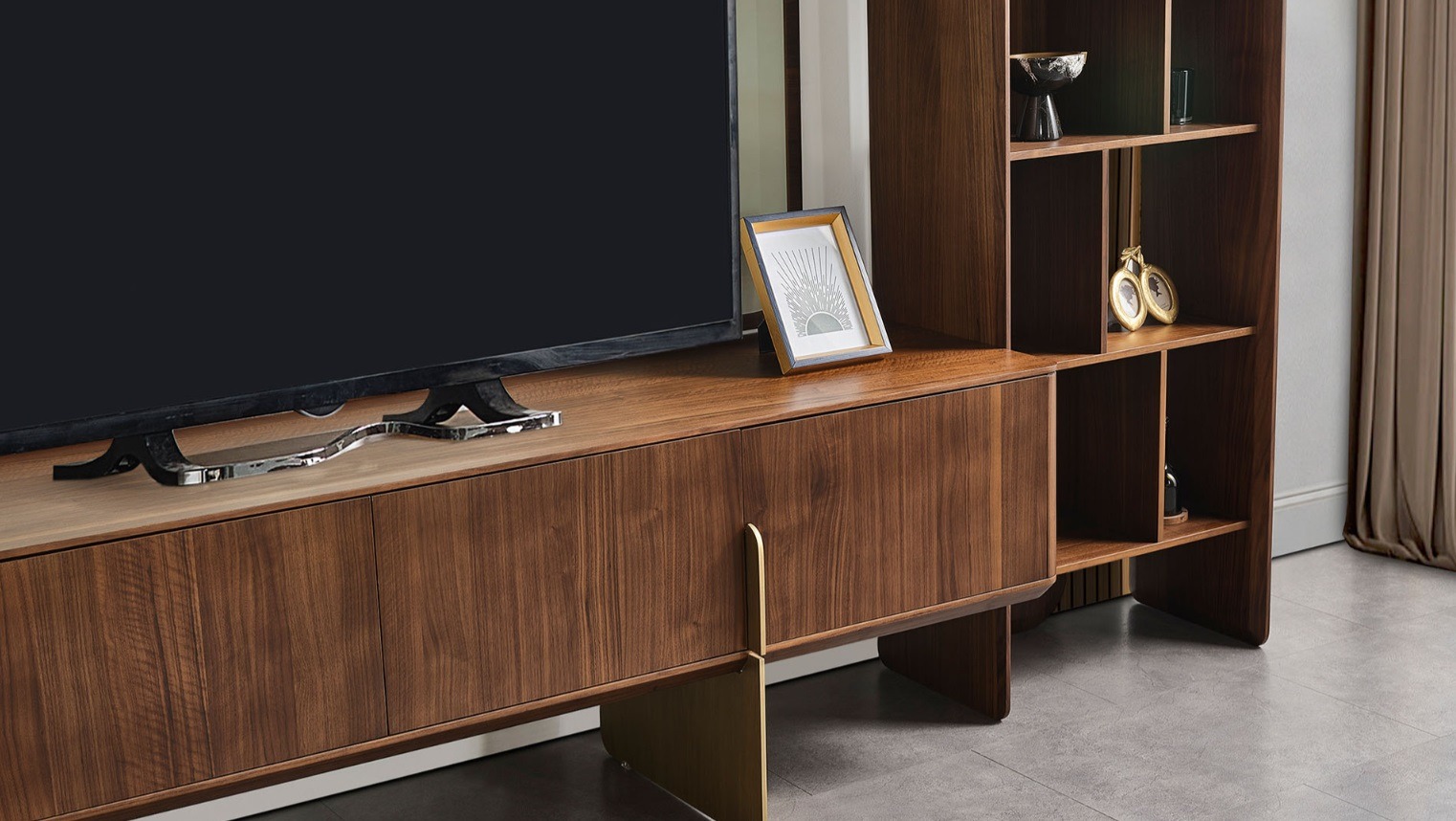 TV-meubel. Ruime boekenkast, Modern woonconcept.