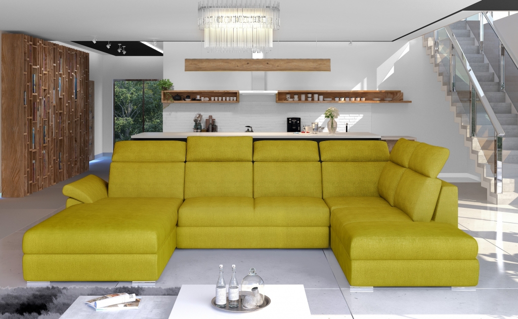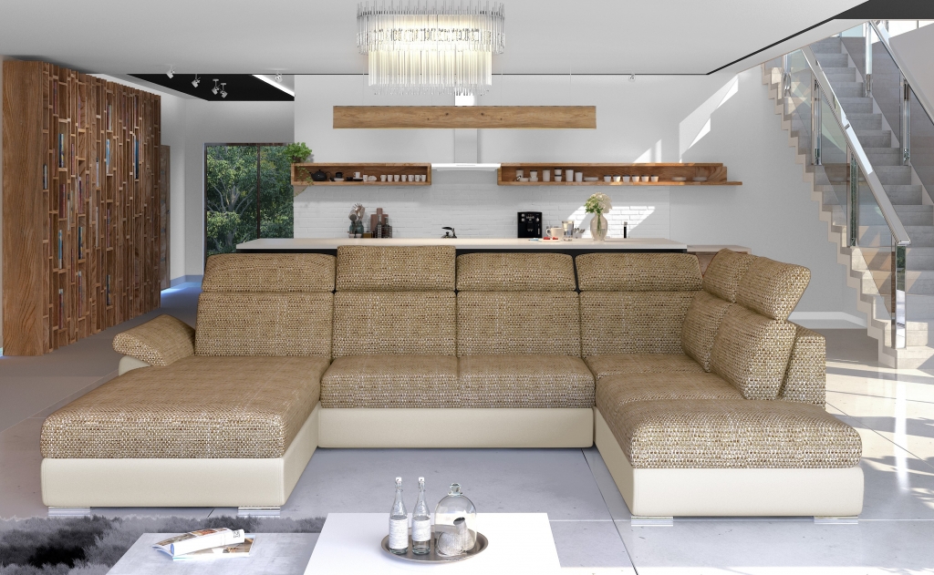 Hoekbank Stof Hoekbank U-vorm Bank Bank Ontwerp Bank Bekleding Textiel Modern is een veelzijdige en stijlvolle toevoeging aan elk modern interieur. Met zijn U-vormig ontwerp biedt deze hoekbank voldoende zitruimte voor jou en je gasten. De bank heeft een afmeting van ca. 216 cm aan de linkerkant, ca. 330 cm in het midden en ca. 216 cm aan de rechterkant. Met een zitdiepte van ca. 60 cm en zithoogte van ca. 41 cm, is dit meubelstuk zowel comfortabel als praktisch. Bovendien beschikt de hoekbank over een slaapgebied van 125x265 cm, waardoor het ook dienst kan doen als een extra slaapoptie voor logees.