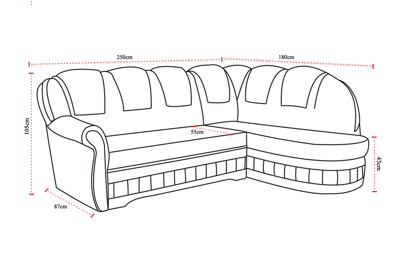 Klassieke hoekslaapbank bank gestoffeerde hoekbank hoekbank textiel is een veelzijdig en stijlvol meubelstuk dat niet alleen een elegante uitstraling toevoegt aan je interieur, maar ook praktisch en comfortabel is. Met afmetingen van ca. 250 x 180 cm of 180 x 250 cm, is deze hoekbank ideaal voor gezellige avonden met vrienden of familie. De zithoogte van ca. 43 cm en zitdiepte van ca. 55 cm zorgen voor een comfortabele zitervaring, terwijl het binnenframe van echt hout duurzaamheid garandeert. Met vrije kleurkeuze en verschillende materiaalopties, waaronder stof - Groep 1 tot stof of kunstleer - Groep 4, kun je deze hoekslaapbank aanpassen aan jouw persoonlijke stijl en voorkeuren.