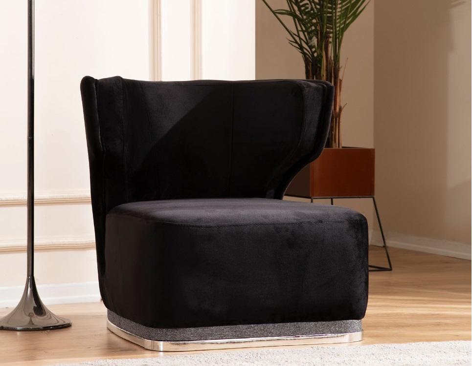 Moderne gestoffeerde zwarte fauteuil Woonkamer Roestvrijstalen poten