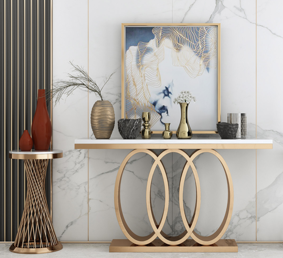 Console, kaptafel, console van marmer en staal, meubels