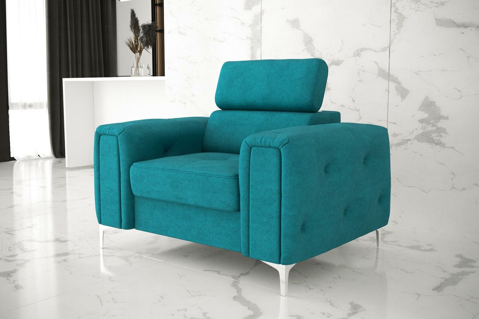Sofa Stof Bank Bekleding Textiel Nieuw Chesterfield Stoel TV Bank 1 Zits: Op zoek naar comfort en stijl in één? Deze prachtige fauteuil biedt een fantastische mix van kwaliteit en design. Met afmetingen van 115 x 95 x 100 cm is deze fauteuil perfect voor ontspanning en vertier. Het binnenframe van echt hout zorgt voor duurzaamheid en stabiliteit. De fauteuil is voorzien van een unieke veer kern die een comfortabele zitervaring garandeert. De vrije kleurkeuze biedt de mogelijkheid om de fauteuil aan te passen aan elke interieurstijl.