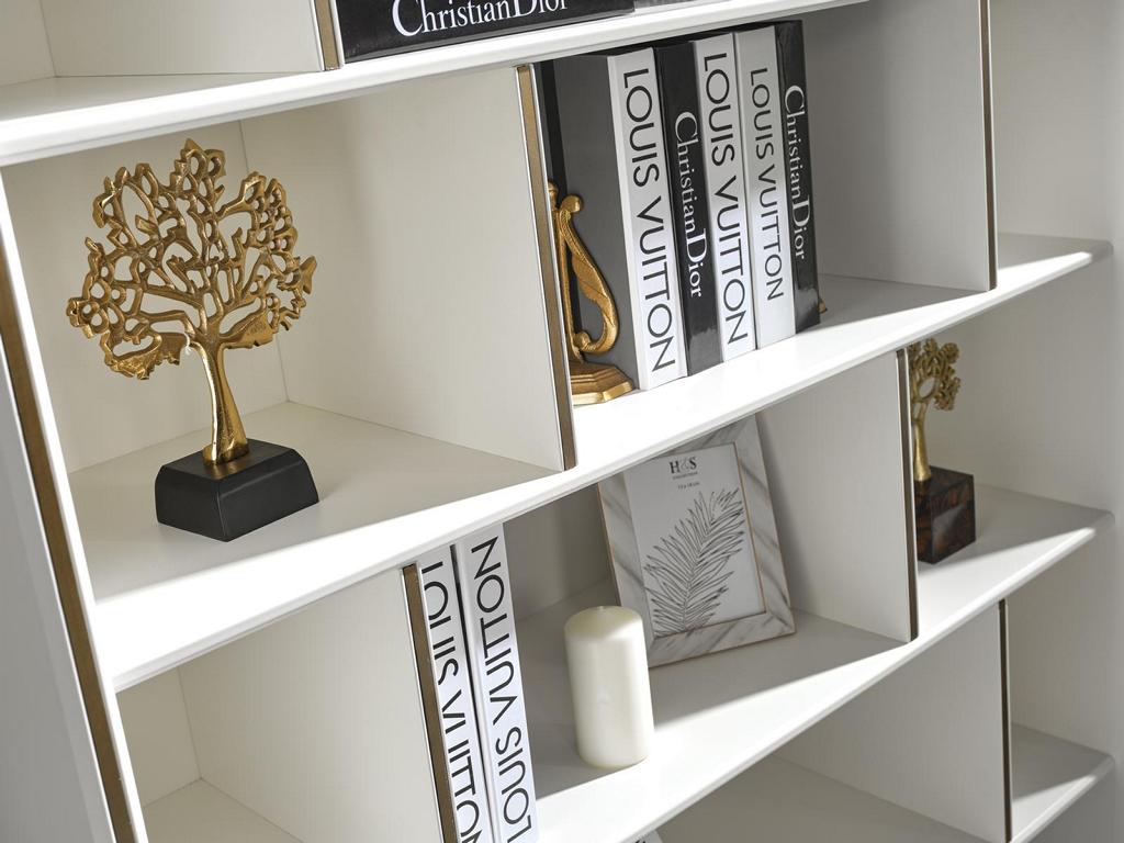 In de boekenkasten van respectievelijk ca. 120 x 40 x 180 cm en ca. 50 x 40 x 180 cm kun je boeken, decoratieve items of persoonlijke bezittingen tentoonstellen. De wandplank van ca. 59 x 20 x 120 cm biedt een perfecte plek om fotolijsten of planten te laten zien. Dit wandmeubel is niet alleen functioneel, maar ook een ware eyecatcher in je woonkamer. Creëer een georganiseerde en stijlvolle ruimte met het Luxe wandmeubel design wandkast voor een moderne en eigentijdse uitstraling.