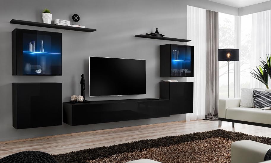 Zwarte woonkamerwand woonkamer meubels luxe muurkast compleet ontwerper nieuw