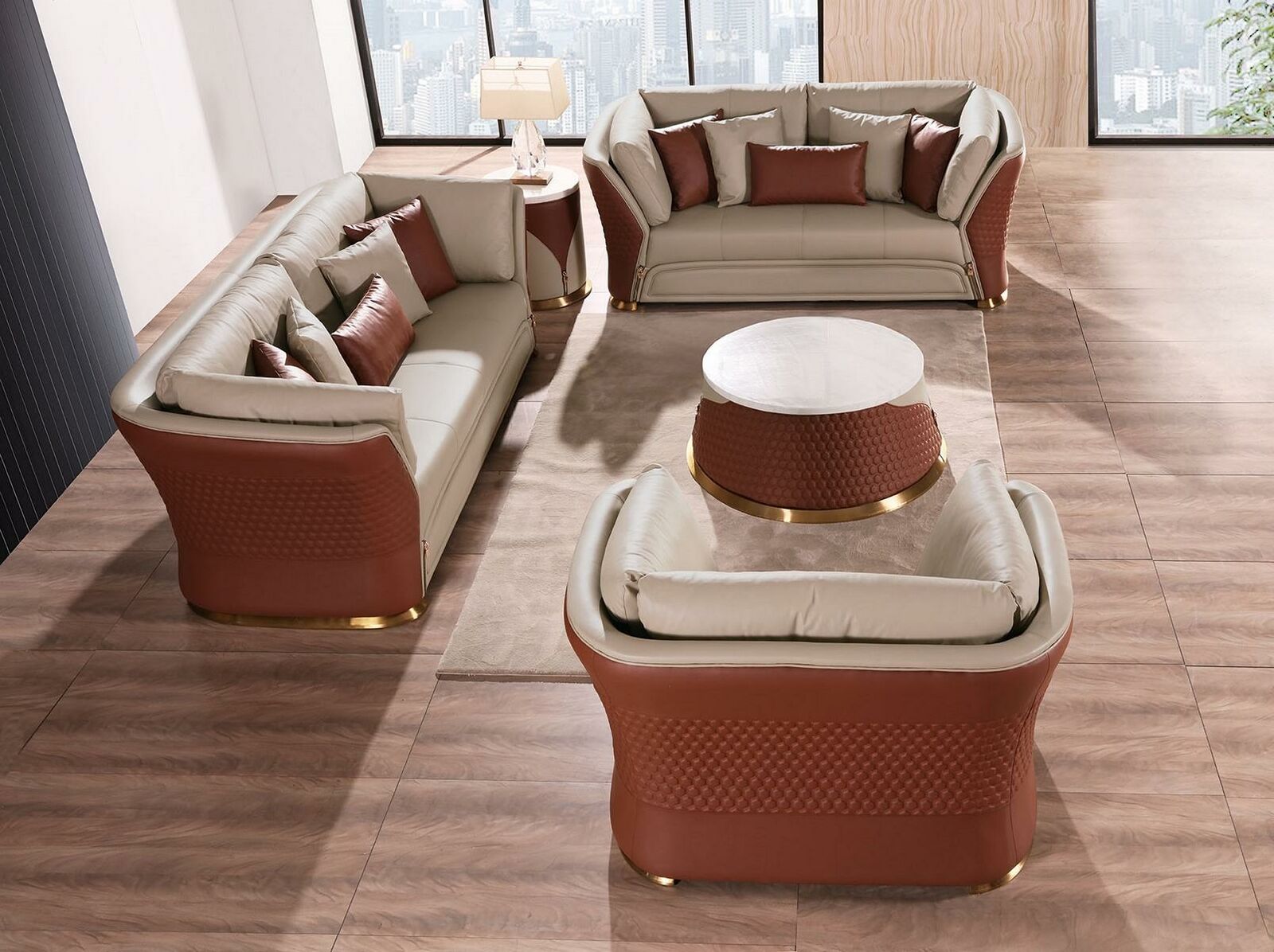 Woonlandschap Bankstellen Bank Beklede Bank 3-zitsbank Set Leren Bank Modern Nieuw
